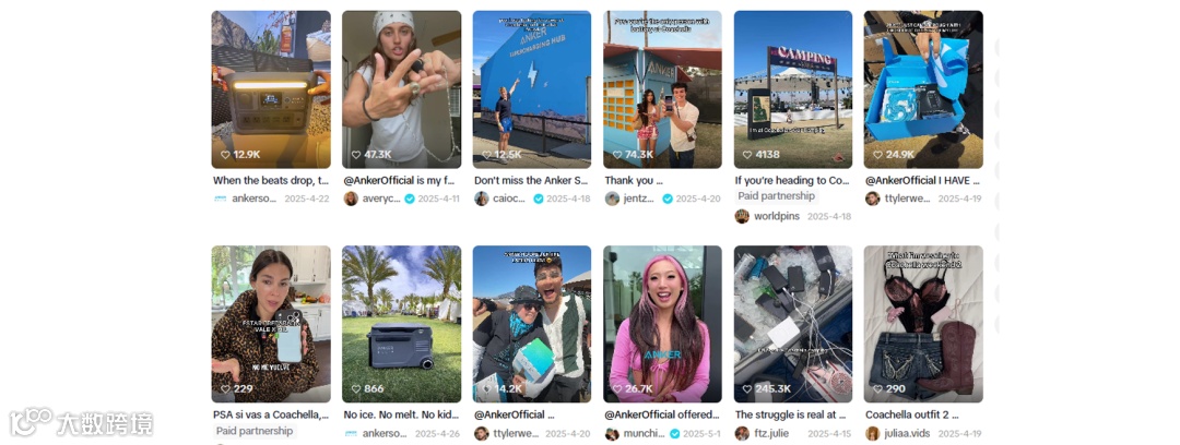 科切拉当然也少不了海外红人营销!Anker在科切拉期间还联合多位时尚生活达人,在TikTok和Instagram上发布内容,把 Anker 当作自己的“科切拉必备单品”来分享。