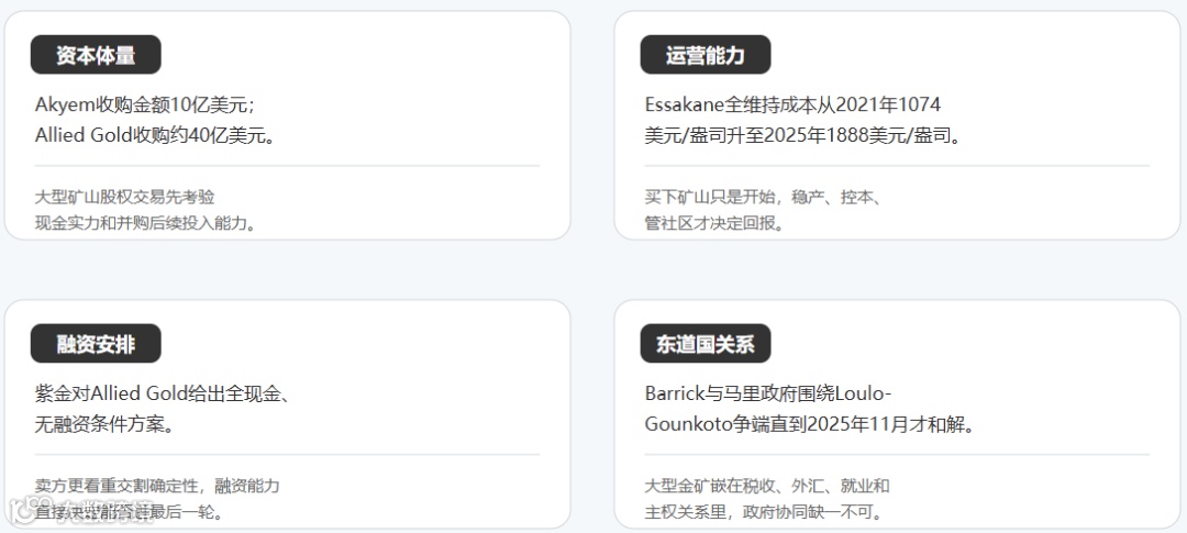 大型金矿并购本质是收购持续运转的产金体系,买家需同步承接地质模型、采剥计划、社区关系等复杂要素,资本仅是基础门槛。