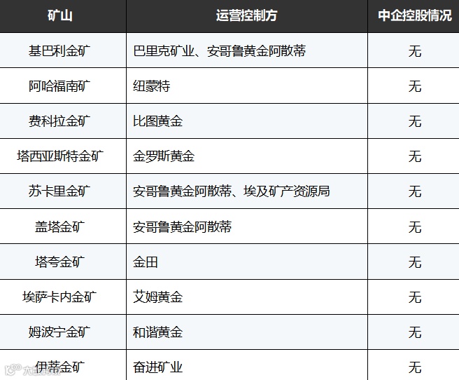 按2025年产量口径,非洲前十大在产金矿的运营控制权主要由巴里克矿业、安哥鲁黄金阿散蒂等国际矿业集团持有。基巴利金矿由巴里克与安哥鲁各持45%,苏卡里金矿由安哥鲁与埃及矿产资源局各占50%,其余如阿哈福南矿、费科拉金矿等均掌握在西方资本手中。