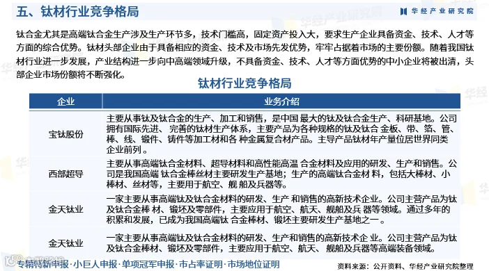 高端钛合金生产技术门槛高、工序复杂、固定资产投入大,对资金实力、技术研发能力与人才储备要求严苛。头部企业凭借先发优势、完整产业链和规模效应,占据主要市场份额。随着产业结构加速向中高端演进,缺乏核心竞争力的中小企业将逐步退出,行业集中度进一步提高。