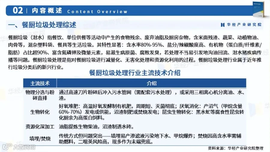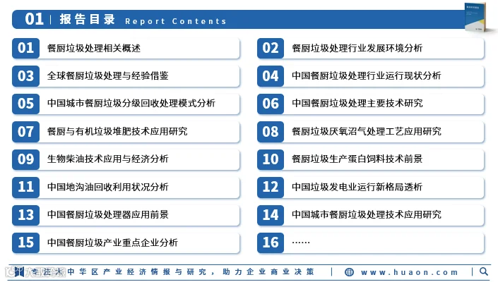 华经产业研究院基于桌面研究、定量调查与定性分析,结合SCP模型、SWOT、PEST、回归分析、SPACE矩阵等方法,系统研判餐厨垃圾处理行业的市场容量、产业链结构、运营特性、盈利模式及政策环境,深入评估技术演进、竞争格局、行业壁垒与核心机遇挑战,编制《2026–2032年中国餐厨垃圾处理行业市场深度分析及投资方向研究报告》。该报告涵盖行业发展环境、运行现状、重点企业经营情况及未来趋势预判,为企业、科研机构及投资方提供权威、实用的决策参考。
