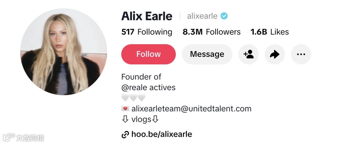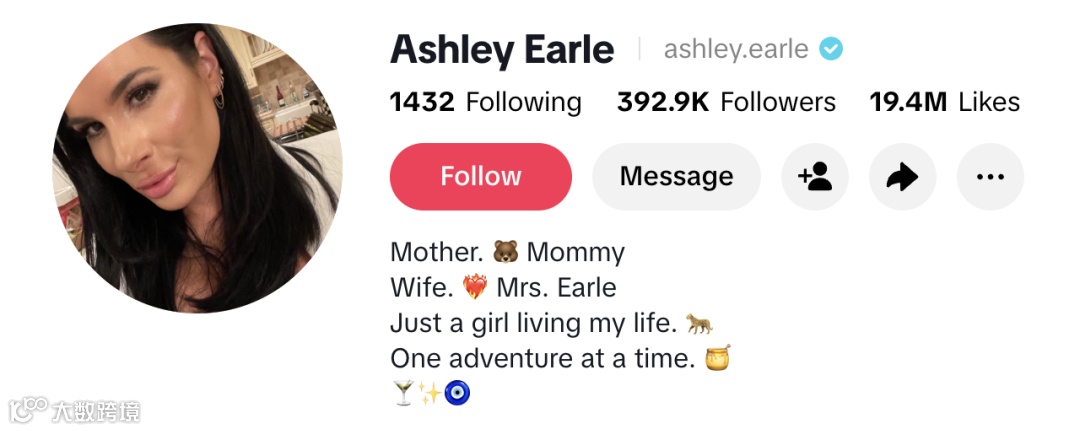 比如,其好友 @Ashley Earle,在TikTok上坐拥30余万粉丝,是生活方式类网红。