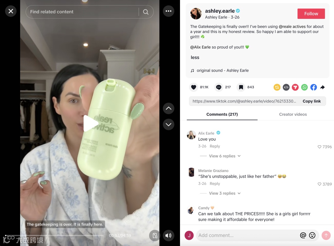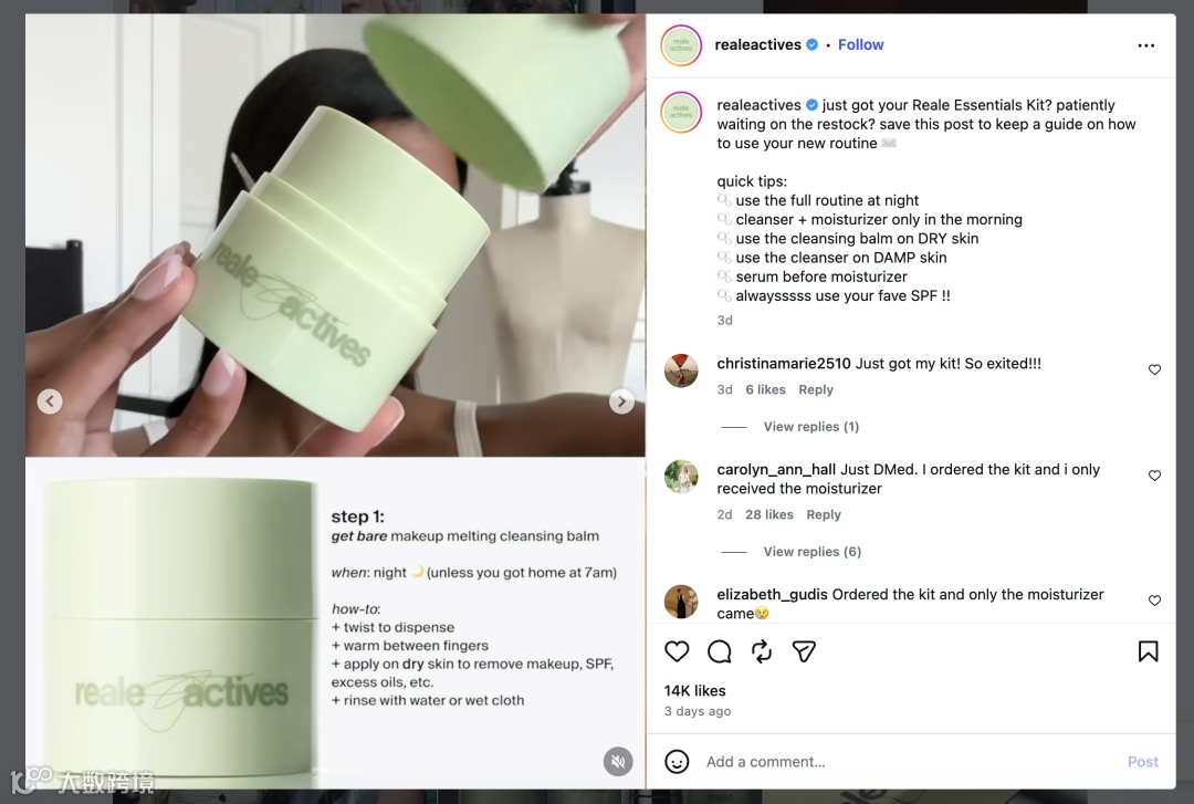 这种真实反馈,比任何昂贵的精修大片都更能直击消费者的购买痛点,也给Reale Actives带来了极高的种草转化率。