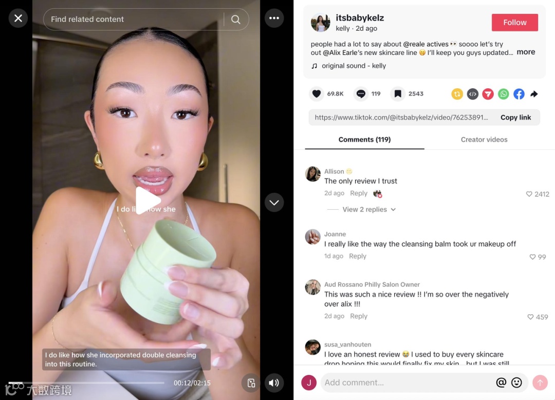 其中,与@itsbabykelz 的合作TikTok视频发布仅两天,便斩获50多万播放,6万多点赞。