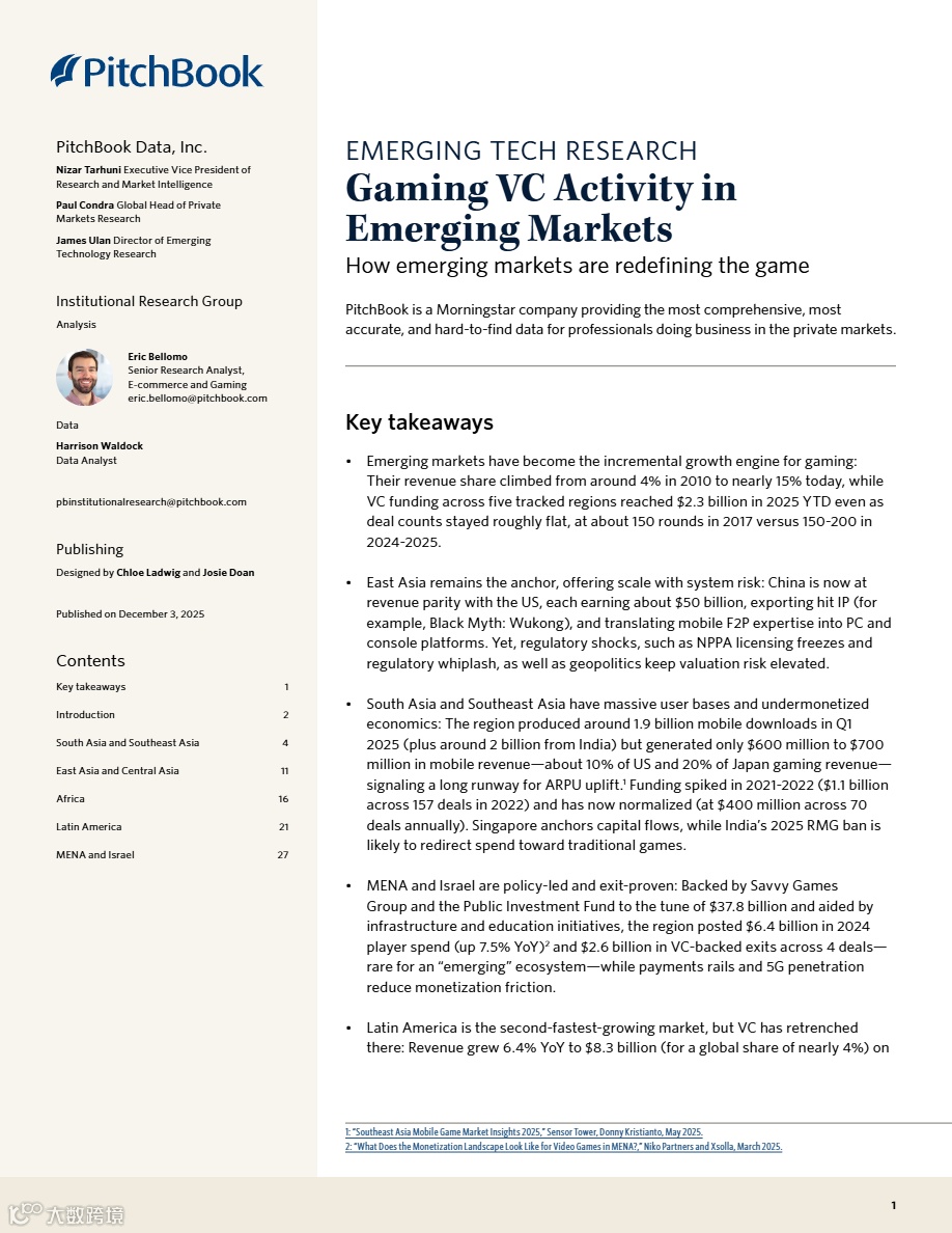 适用人群:布局全球发行的游戏开发商、关注新兴市场VC机会的投资机构、计划拓展中东/东南亚市场的DTC数字娱乐品牌、提供支付与云服务的B2B科技服务商。