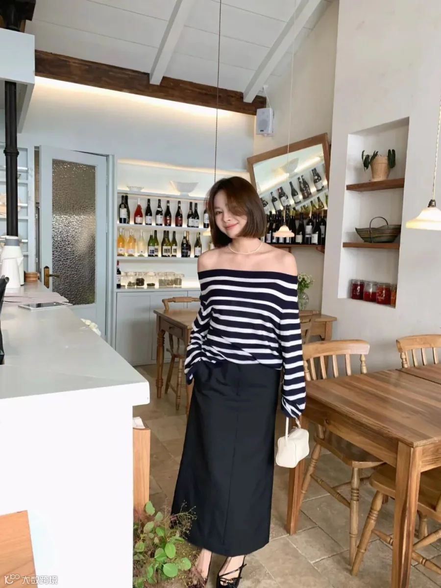 我们通勤日常就一字领穿好啦不用拉下去