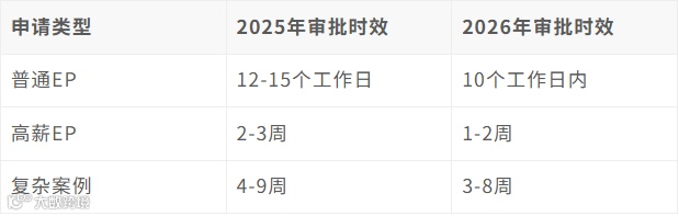 MOM明确:普通EP 10个工作日内办结;高薪EP(月薪≥22500新币)优先审批,周期缩短至1–2周;复杂个案为3–8周,无90天统一标准。2026年AI预审系统上线后,材料齐全者最快7个工作日获批,整体时效稳定性大幅提升。