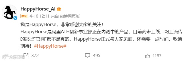 HappyHorse出自阿里新成立的ATH事业群创新事业部(非核心通义实验室),团队整合淘天未来生活实验室与阿里妈妈资源。该模型直指当前最热赛道——视频生成,挑战Seedance 2.0的主导地位。