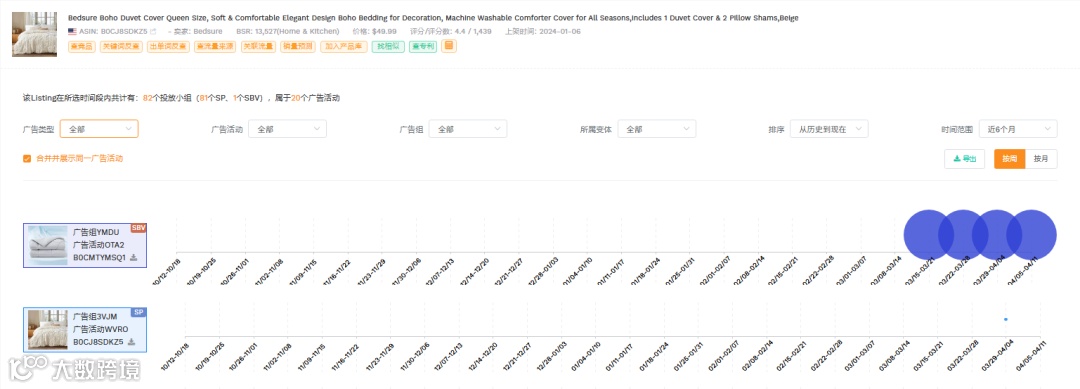 广告结构参考: 观察竞品是否对所有变体投广告。有些竞品可能主攻视频广告,而放弃某些变体的SP词广告,这就是差异化竞争的切入点。
