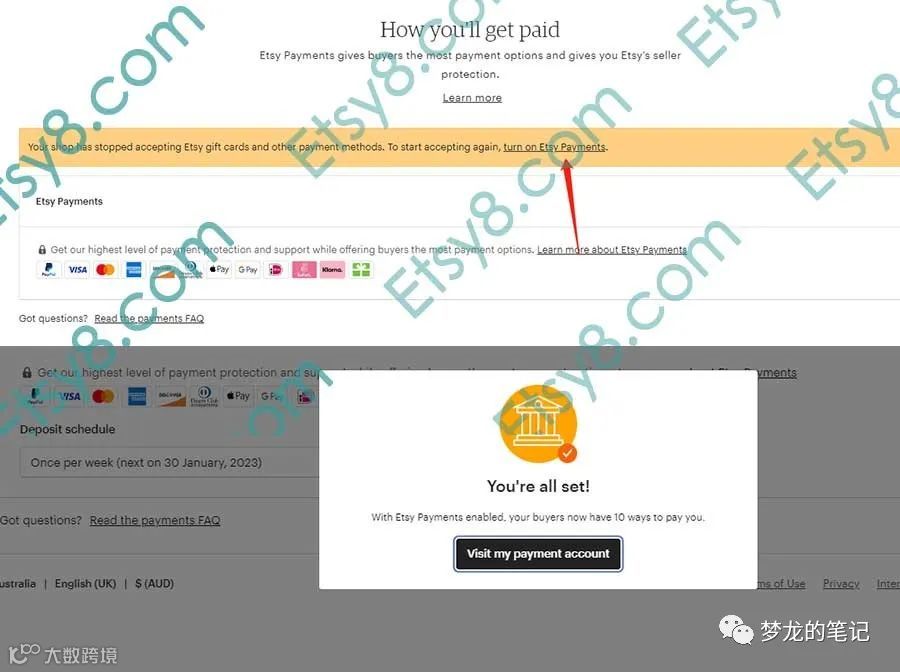 到这一步,我们要点一下:“TURN ON Etsy Payments”