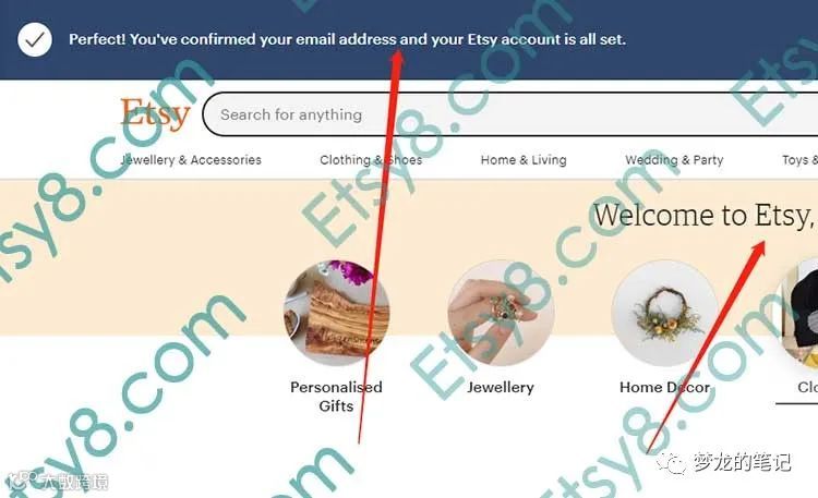 这里,过上5-10分钟,我们的邮箱里面会收到一个封来自ETSY的确认信。