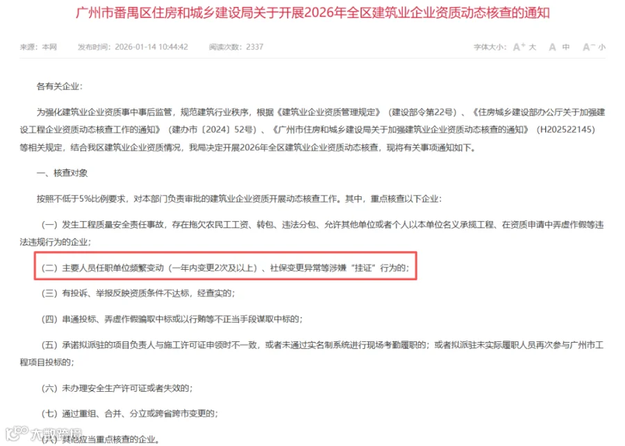 与此同时,广州和深圳还建立起常态化动态核查制度:对一年内人员变更超2次、社保异常的企业实施【资质异常】标注,限期整改不达标,依法撤回资质!