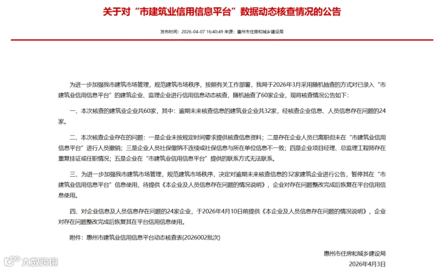 32家广东建筑企业被暂停信用信息使用、60天内必须整改……各位老板,今年的动态核查可不是闹着玩的!