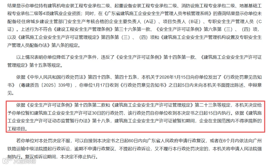 广东省住建厅在开年以来就持续加强对各地工地安全生产条件的动态监管。今年2月初,一次性点名了13家建筑施工企业,并作出暂扣安全生产许可证的行政处罚。