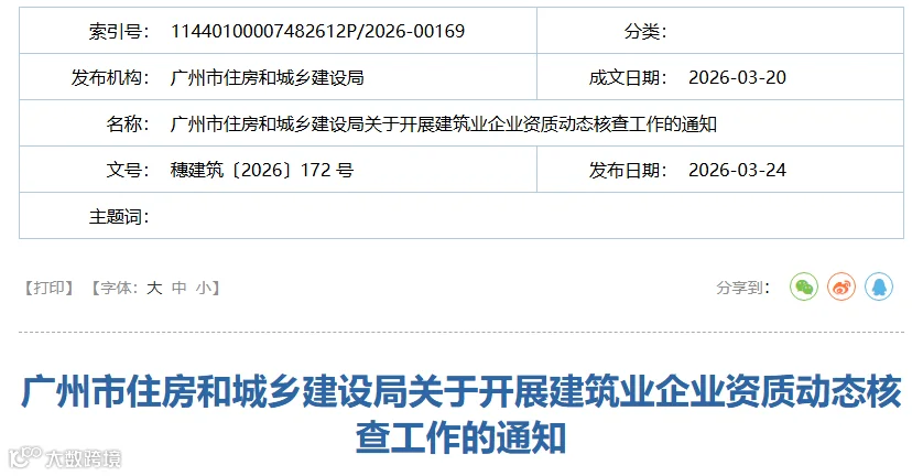 更让人紧张的是另一份文件:《广州市建筑业企业资质动态核查》,从2026年5月1日开始,凡有以下情况的建筑企业,都会被重点核查: