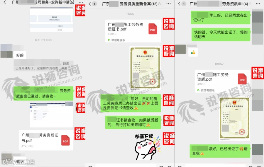 最后,如果您在广东做建筑劳务,不管是新办资质,还是延期、变更、重新核定,都可以找我们——锐狮专业咨询团队来代办。