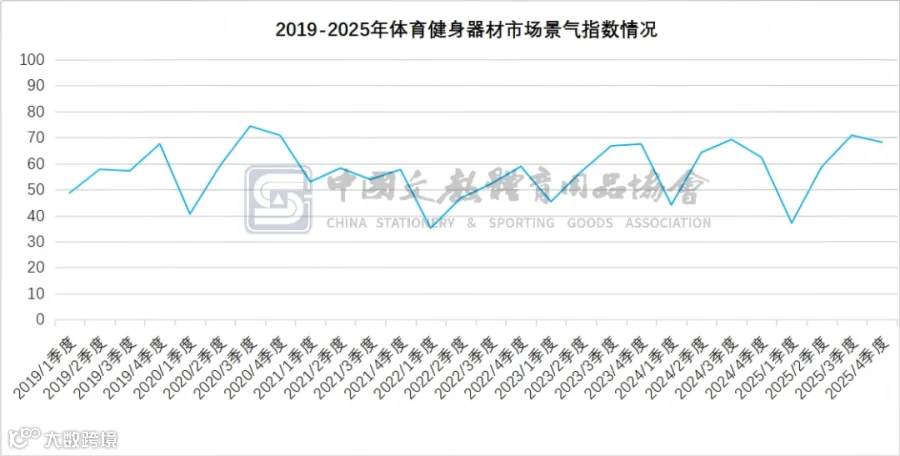 2025年四季度,中国体育健身器材市场景气指数(SEI)为68.2,虽较三季度小幅回落2.7,但仍显著高于荣枯线(50),行业整体保持在较高景气区间运行。