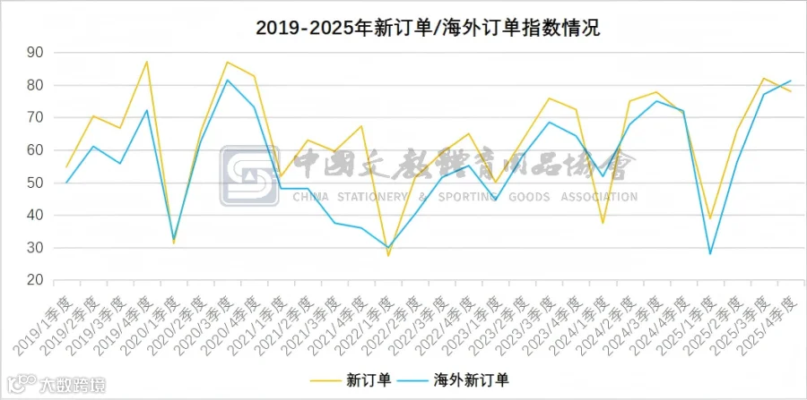 从分项指标看,行业呈现“外需回暖、生产平稳、盈利持续改善、库存加速去化”的运行特征。从具体指数看,生产指数为82,虽较上季度有所回落,但仍处于扩张区间,生产节奏趋于理性;新订单指数为78,略有回调,需求边际趋稳;海外订单指数升至81.25,外需表现较为亮眼;盈利指数升至76,连续改善,企业盈利能力进一步增强;产成品库存指数降至36,库存去化明显,渠道消化顺畅。同时,采购指数回落至76,企业备货趋于谨慎,从业人员指数升至66,用工需求继续扩大,市场预期指数为60,仍处于扩张区间。