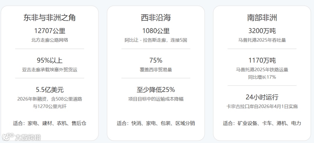 当前非洲经济走廊建设已进入交通设施、边境治理、数字系统与区域仓配协同推进阶段。对中企而言,其核心价值在于将单国销售升级为区域分销网络,并将一次性交付延伸为涵盖仓储、配送、通关及售后的持续收益模式。