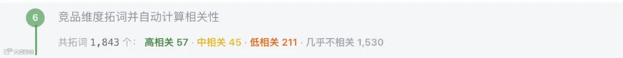 基于标题、五点、描述等字段展开拓词,同步计算并标注高/中/低相关性。