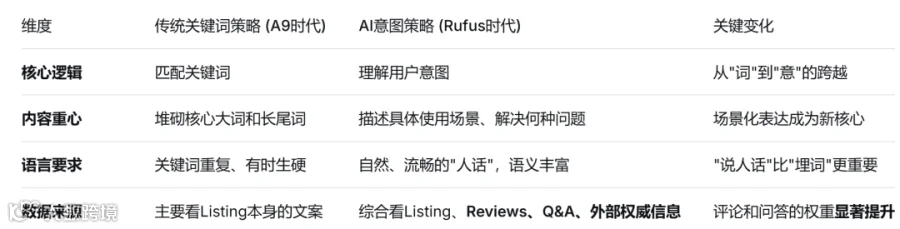- 对AI(如Rufus):是解析用户场景、人群与目的的“意图信号”,推动产品与真实需求深度匹配;