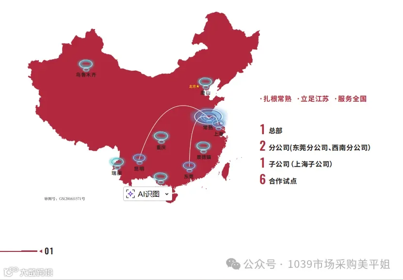 总部位于江苏常熟,设立东莞分公司、西南分公司(渝采通)及上海子公司,并在胡志明市布局越南分公司,服务覆盖全国6个合作试点。