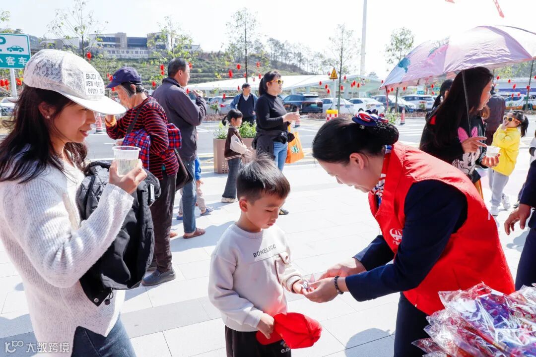 还有志愿者为旅途中的司乘递上暖心姜茶,送上手写福贴、千纸鹤、新春对联及安全宣传单,并提供ETC办理咨询、周边景点路线指引等实用服务。当天,活动累计送出440份志愿服务礼品,不仅以实际行动诠释了“温暖回家路”的真正含义,也让“遇见李”停车区成为一个浪漫且有温度的旅途驿站。