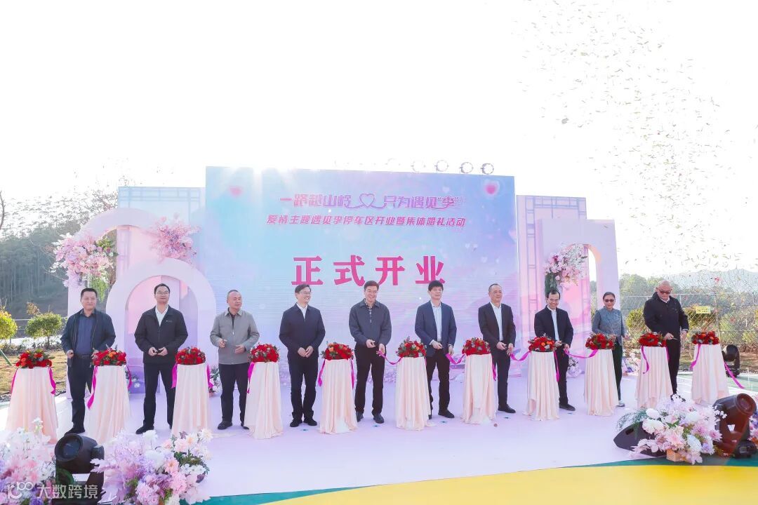 开业当天,“遇见李”停车区以一场融合了启幕剪彩、集体婚礼的多元仪式,正式浪漫启航。集体婚礼现场十对新人交换戒指、许下誓言,证婚人现场送上祝福。