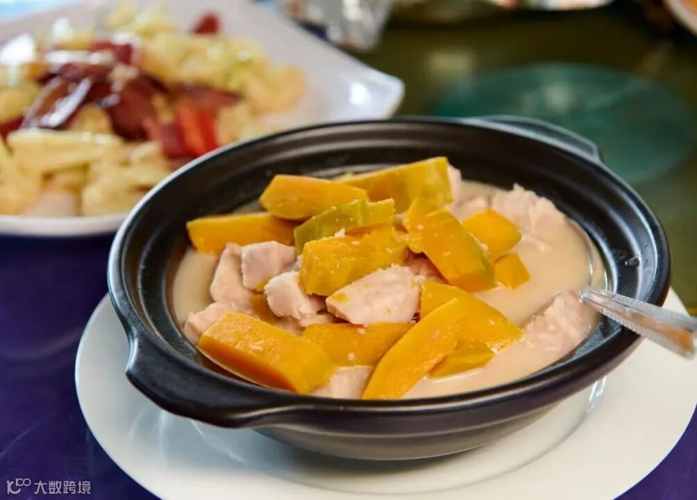 美食推荐:芋头南瓜煲、窑鸡、蜜汁排骨、鲍汁豆腐