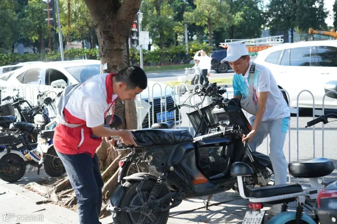 为维护周边区域的文明秩序,在活动开始前,志愿者还将散落在人行道、绿化带旁的共享单车及电动车辆逐一扶正归位,并在集中停放区张贴文明提示贴,引导市民养成规范停车的好习惯。此外,在十字路口协助交警疏导交通,对非机动车逆行、闯红灯等不文明行为进行劝阻。