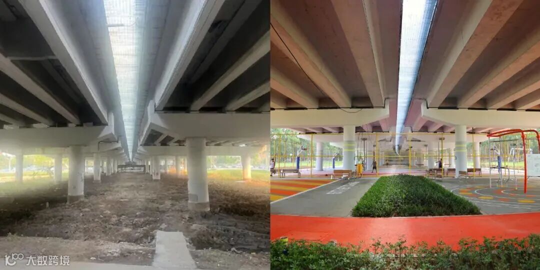 为科学规划、集约利用桥下空间,合理配置各类设施,持续推进绿美广东生态建设,今年5月,广珠段公司联合广州南沙经济技术开发区建设中心对大涌高架桥黄阁南路沿线、凤凰大道沿线、南沙蕉门河中心区公园近3万平方米的桥下空间进行了升级改造——曾经杂草丛生、利用率低下的“灰色空间”, 如今变为儿童玩乐、青年运动、长者休闲的全龄段活动场所。