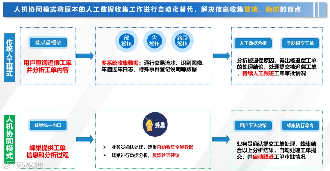 在传统稽核模式下,工作人员需在部、省、路等多级稽核平台间反复切换,完成工单处理、证据链收集等复杂流程。每单操作涉及数据搜索、图像采集、信息提交等多个环节,耗时长,且人工操作易因疏忽出现错误,影响稽核准确性。跨省追缴工作更是耗时耗力,需协调多地部门反复核实信息。