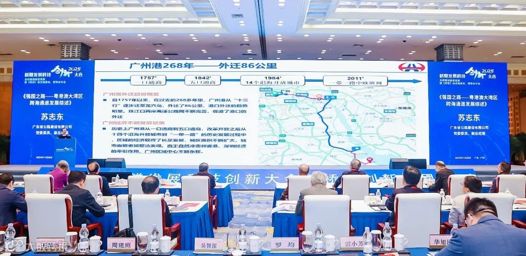 在大会开幕式上,公司党委委员、副总经理苏志东以《强国之路——粤港澳大湾区跨海通道发展综述》为题,重点介绍了公司重大跨江跨海通道项目在智能化、绿色化等方面取得的技术突破,进一步展现了公司在跨江跨海通道建设与管养领域的强大综合实力。