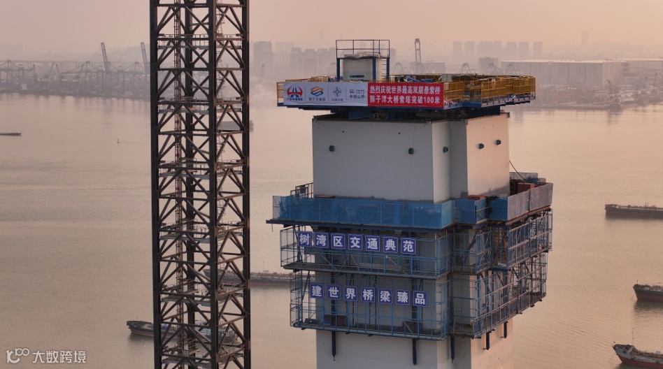世界最高双层悬索桥狮子洋大桥索塔突破100米