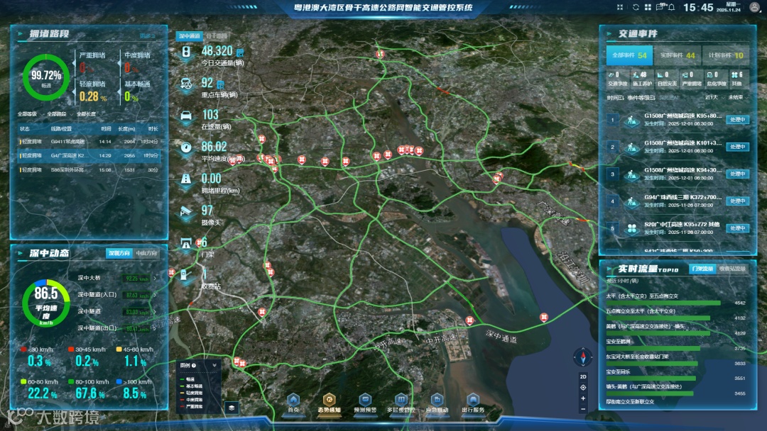 11月27日-28日,第二届全国高速公路数字化转型升级交流会议在广东召开。期间,公司在深中通道西人工岛举办了现场交流会,会上展示了粤港澳大湾区骨干高速公路网智能交通管控系统、南沙大桥主动交通流管控项目及荔湾南智慧收费站的数字化转型成果,获得与会领导的一致好评。