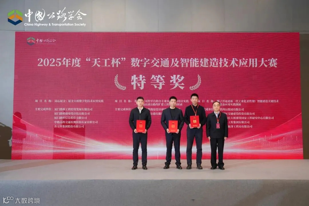 12月1日-3日,2025年度中国公路学会2025学术年会在厦门召开,现场颁发了2025年度中国公路学会科学技术奖及“天工杯”特等奖。其中,公司多个项目斩获科学技术奖特等奖、一等奖、二等奖,以及“天工杯”特等奖、一等奖、二等奖、三等奖。
