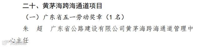 黄茅海跨海通道管理中心主任朱超、深中通道管理中心安全管理部部长黄晓初荣获“广东省五一劳动奖章”