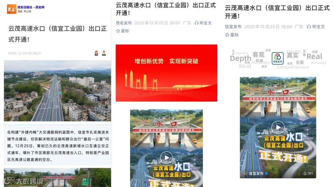 水口站毗邻信宜产业转移工业园,开通后将畅通园区物流、降本增效;同时,串联周边优质旅游资源,激活乡村旅游。未来,随着云茂高速与包茂、阳信高速连通,该站将成为信宜路网重要枢纽,推动信宜生态优势转化为发展实效,助力粤西山区高质量发展。