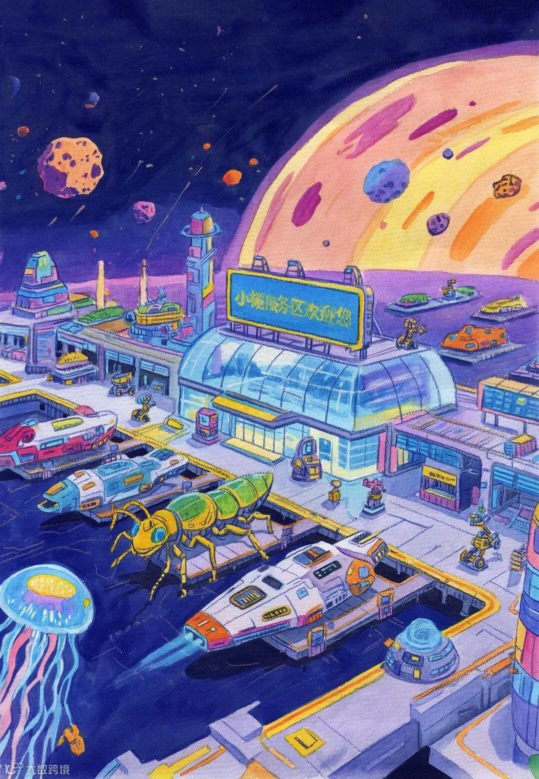 作品以“赛博星际”为主题,畅想在时代飞速发展的未来,建立的全新高速服务区。