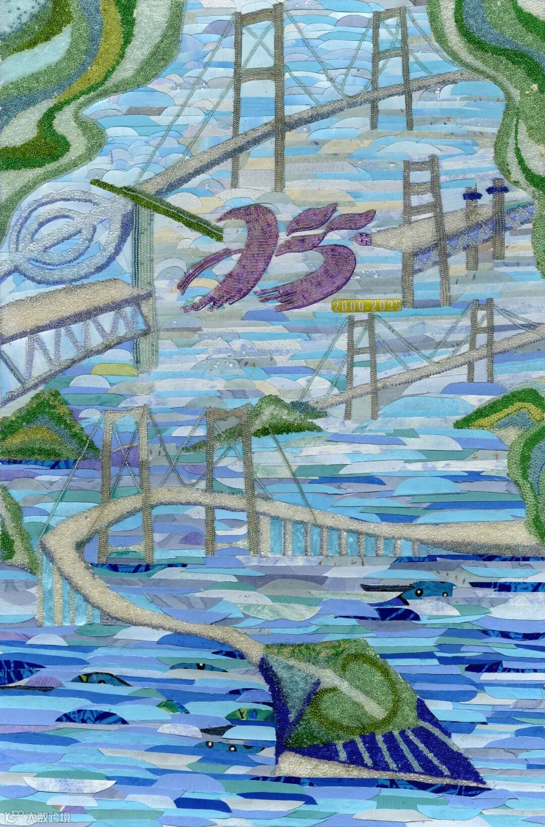 作品使用了深中通道、虎门大桥、南沙大桥等元素,表达了作者对粤港澳大湾区交通发展的美好祝愿。