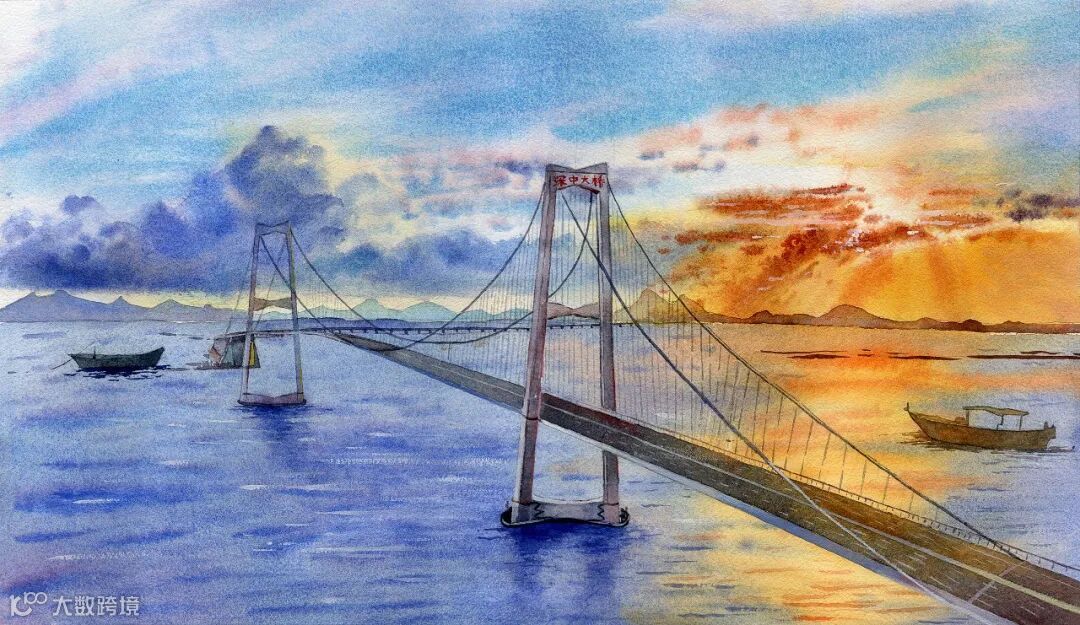 作品生动展现了深中大桥的磅礴气势与壮丽景象,记录了世纪工程的壮阔之美。