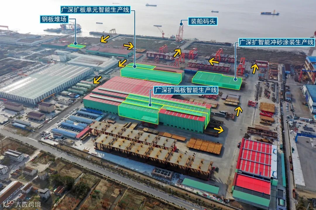 此外,项目采用测量精度达0.5毫米的Trimble TX8三维激光扫描仪进行全过程实时监控,并在板单元生产中采用自动化生产工艺,应用板单元自动打磨、智能焊接等设备,实现自动识别、路径规划和焊接参数匹配的智能化生产流程,有效提高拼装精度和生产效率。