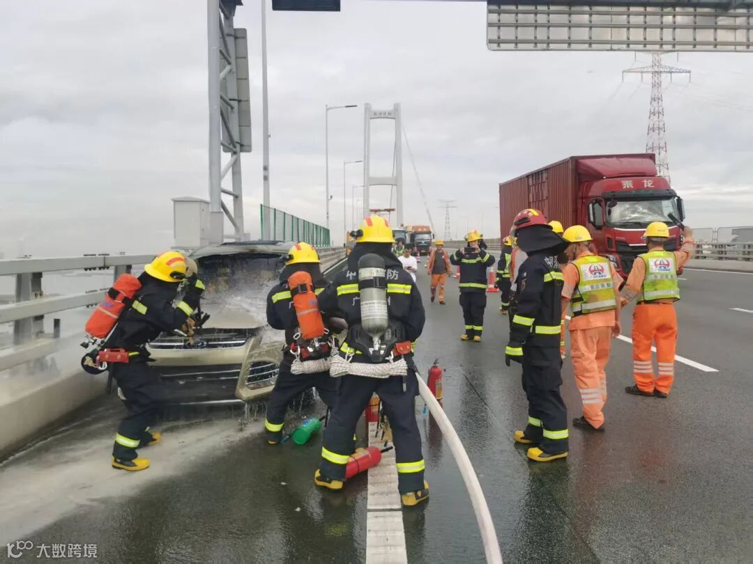“南沙大桥路政,东行K11路肩有小车着火,请立即处置!”7月23日7时38分,路政员曹鸿飞、张希泽接到紧急指令,两人立即踩着油门朝事发点疾驰。