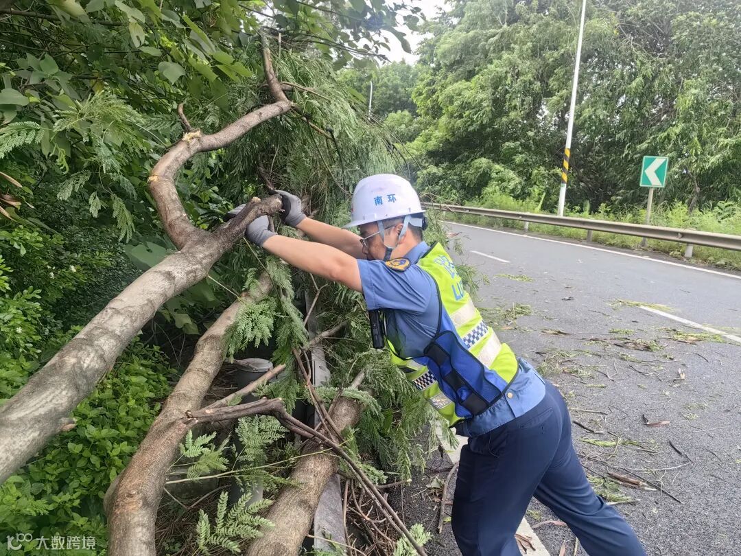 虎门大桥公司组建应急救援小组排查险情保畅通,共清理伏倒树木8棵、路面障碍物10处。