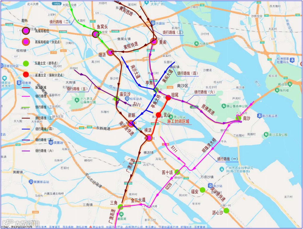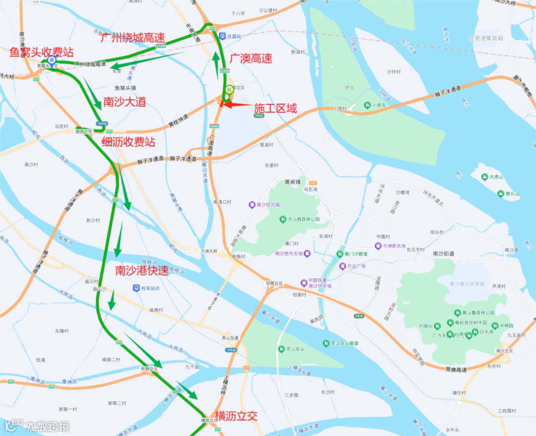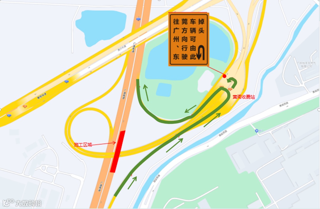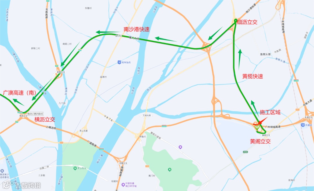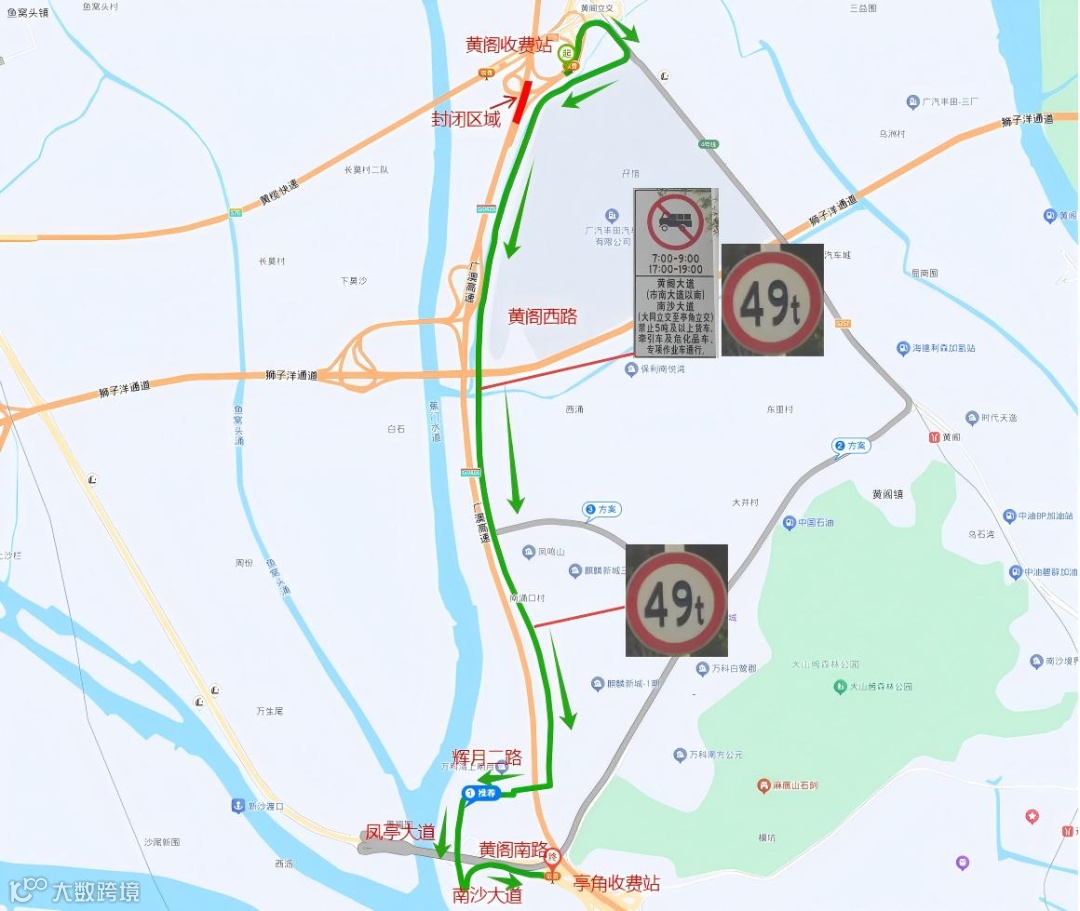 绕行路线:黄阁收费站出→外广场掉头→进入黄阁收费站