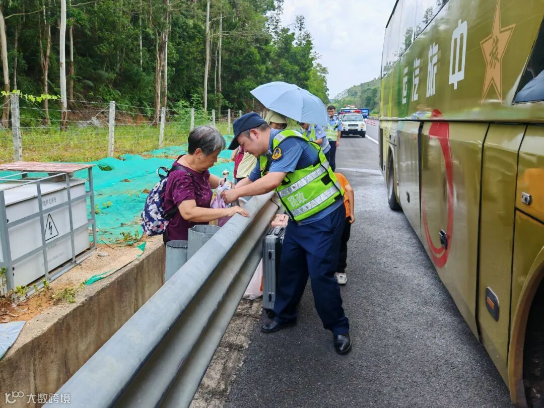 “天气太热了,大家喝点水吧!”考虑到高温酷暑,乘客中又有不少老人和小孩,在做好现场围蔽后,路政员从巡逻车搬来整箱矿泉水逐一分发给乘客,并提醒他们注意脚下安全。同时还贴心地为出现不适症状的老人和小孩递上藿香正气水,“这是解暑的,喝一点能缓解一下。”在路政员的帮助下,乘客紧锁的眉头渐渐舒展开来。