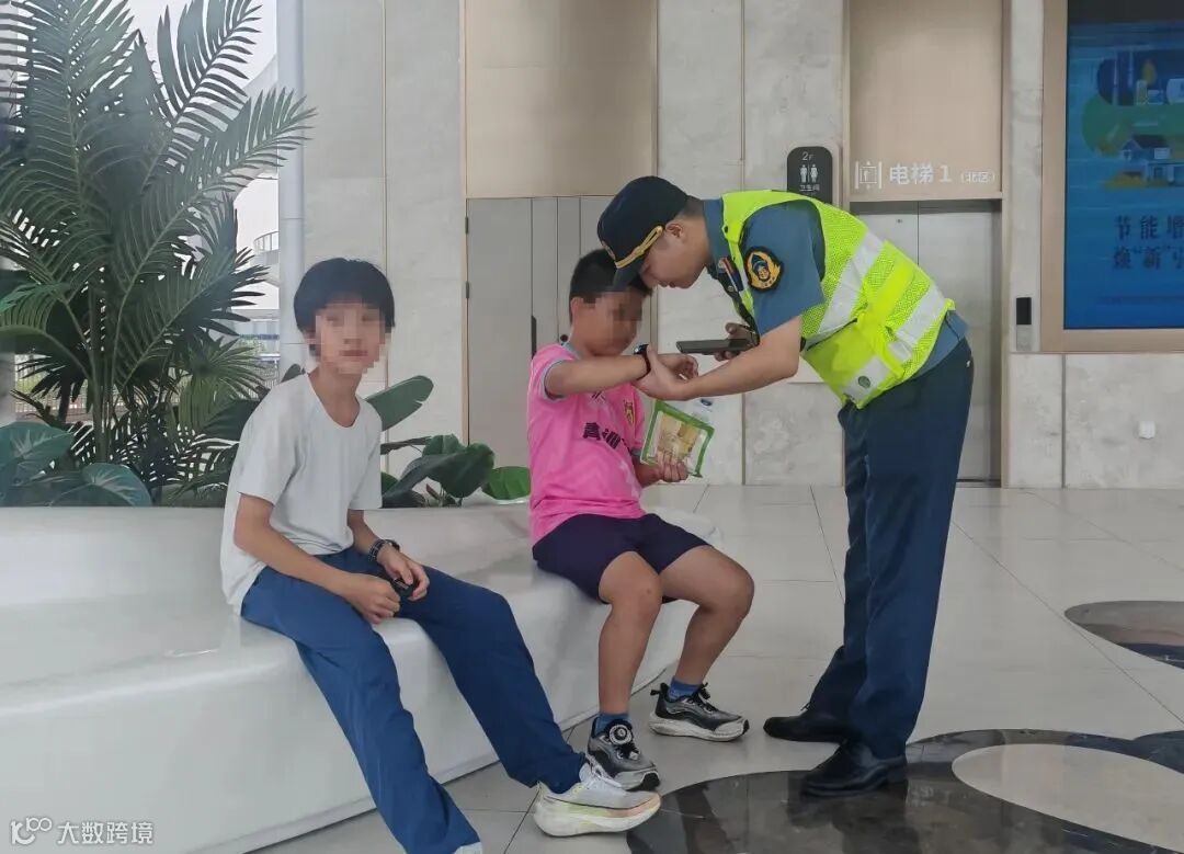 “我们乘坐的大巴车开走了,怎么办?”原来,这两位小朋友当天乘坐大巴车从深圳出发到阳江参加夏令营,途中在服务区上洗手间后找不到车辆,当看见一辆相同颜色的大巴车开走后,认为被“丢”在了服务区,便跑步追赶。