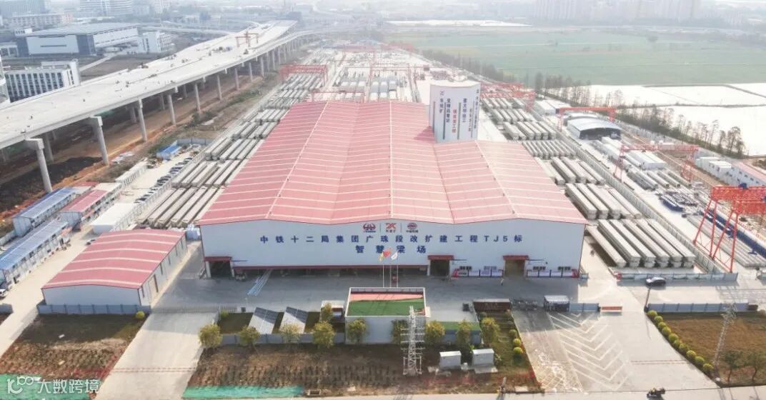 T13标负责承担项目部分箱梁及桥面板的预制,其中,箱梁达7790片,桥面板预制超5600片,是全线最大梁场。该梁场为国内首个公路预制箱梁柔性环形生产线,攻克10项国内首创技术,钢筋自动化组装成型占比超80%,可实现同一套模板通过简单调节即可预制生产不同梁长、不同角度的箱梁。
