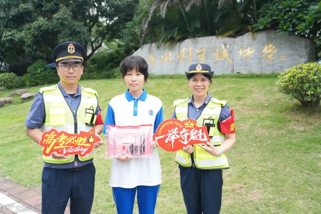 志愿者为广州科学城中学考生送上祝福