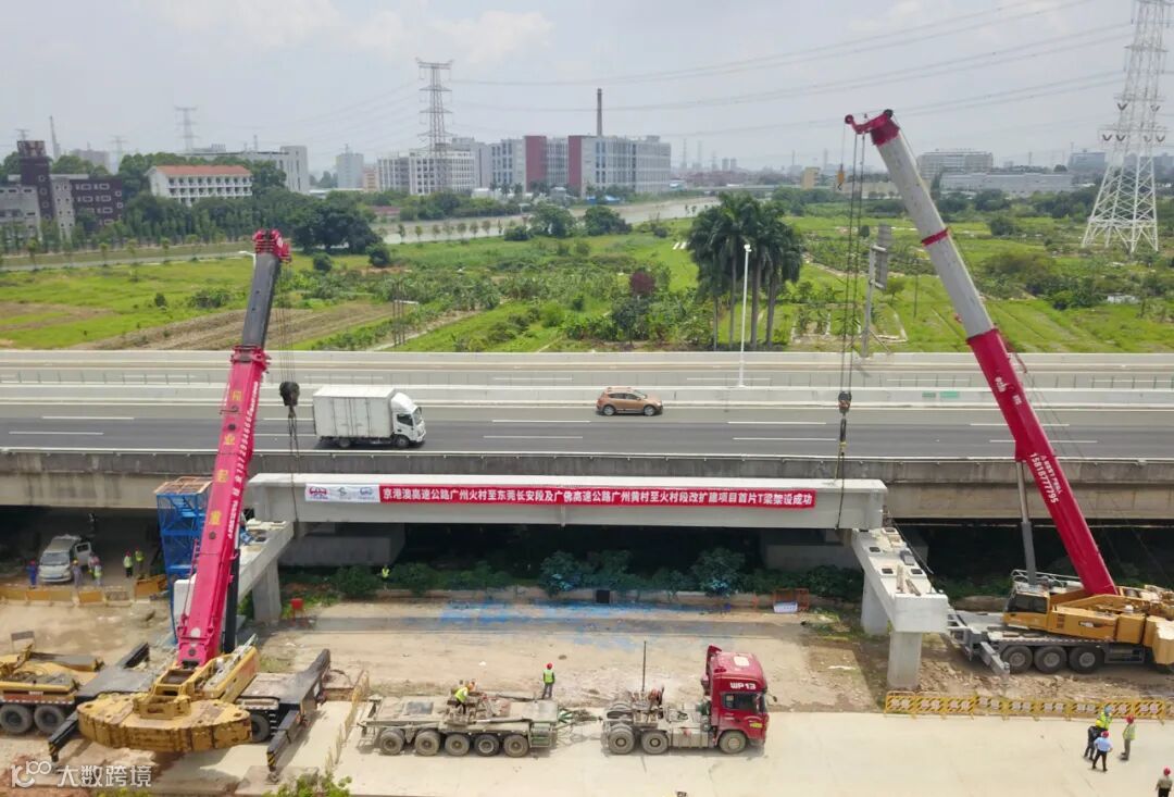 6月8日,京港澳高速公路广州火村至东莞长安段及广佛高速公路广州黄村至火村段改扩建项目(以下简称项目)首片T梁在旱桥7成功架设,标志着项目桥梁工程建设向前迈进了坚实的一步。